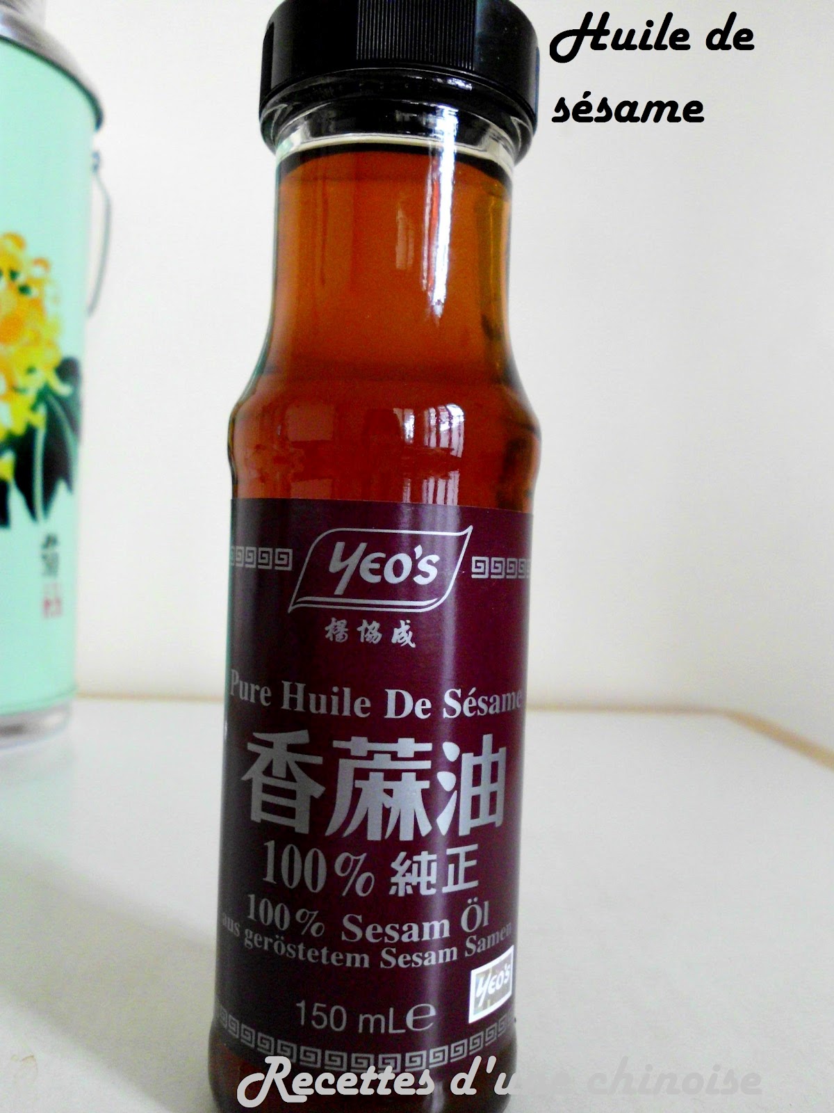 L'huile de sésame est extraite des graines de sésames. Son arôme est assez particulier et marqué. Dans la cuisine chinoise, on l'utilise toujours en petite quantité à la fin de cuisson pour donner un peu plus de parfum. Elle est très rarement utilisée comme huile de cuisson. Cette huile est également utilisée pour assaisonner les plats froids.