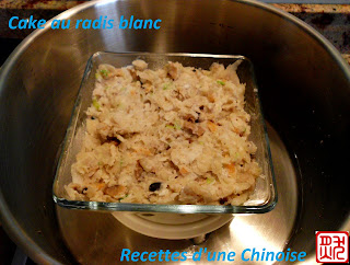 8. Graissez un plat creux avec 1/2 c. à soupe d’huile, remplissez avec la pâte au radis blanc. Faites cuire à la vapeur pendant 25 min.