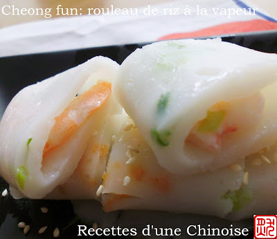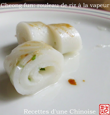 Après une douceur sucrée de Canton, je continue en faisant ce fameux Cheong fun (ou Cheung fun ou Cheong fan en cantonais, chángfěn en chinois mandarin), un petit déjeuner populaire que l'on peut déguster dans la rue, mais aussi comme une variété de Dim Sum au restaurant.