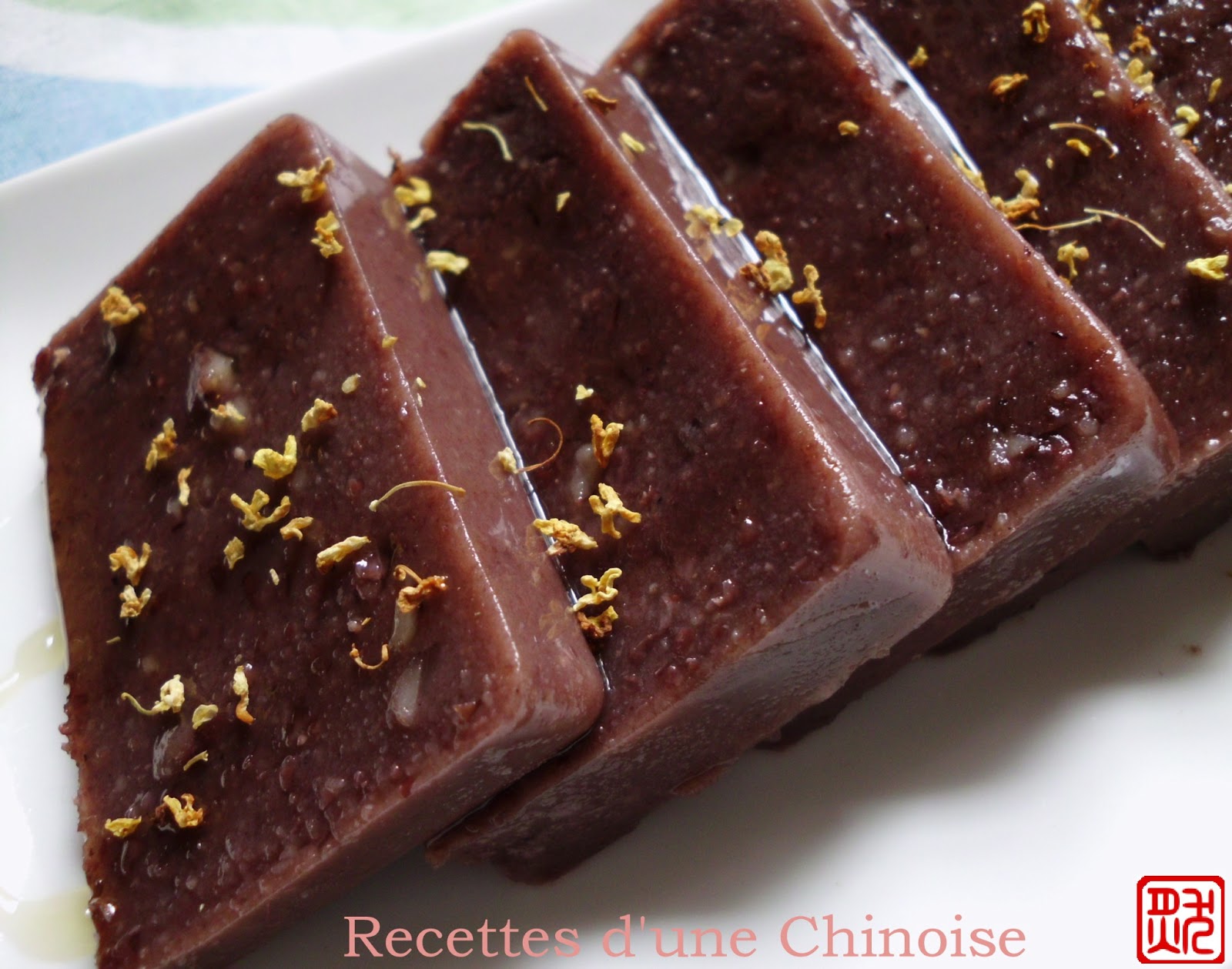 "Yokan" en japonais ou "yang'geng" en chinois est une pâtisserie à base de pâte de haricot azuki et de gélifiant (agar-agar ou gélatine). Il est léger et rafraîchissant, idéal pour un tea-time.