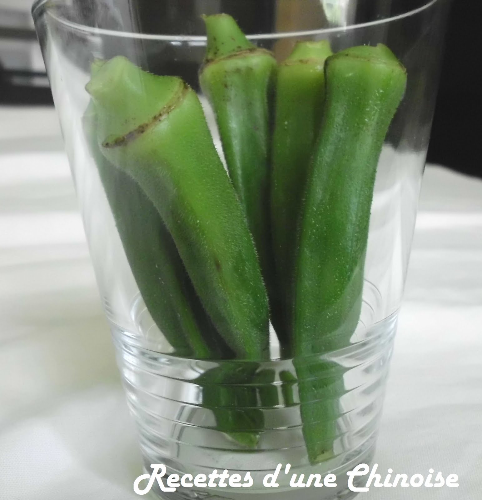 Le gombo est un légume tropical, originaire d'Afrique. Il est de couleur verte, long de moins de 10 cm en général. Maintenant, on en produit également à Taiwan et dans le sud de la Chine. Son fruit peut être mangé cru ou cuit, après la cuisson, il devient tendre et un peu gélatineux.