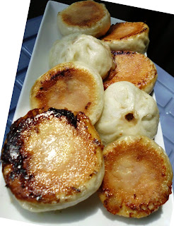 6. La cuisson: chauffez à feu doux 2 c. à soupe d'huile végétale dans une grande poêle (de préférence anti-adhésive), mettez les BaoZi dans la poêle, laissez un peu d'espace entre eux pour qu'ils ne se collent pas les uns aux autres. Mettez un couvercle et laissez cuire pendant 12-15min. Ajoutez la moitié d'eau froide au début de la cuisson et l'autre moitié au milieu de la cuisson. En fait, les BaoZi sont cuits dans un mélange d'eau et d'huile, d'où le nom de cette variété de BaoZi "shuǐ jiān bāo" (traduction littérale: eau-griller-petit pain).
