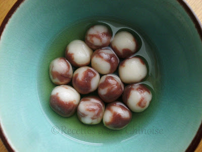 Je vous propose cette année les tang yuan servis dans une infusion de thé oolong, le fraîcheur du thé équilibre à merveille le goût sucré de la farce.