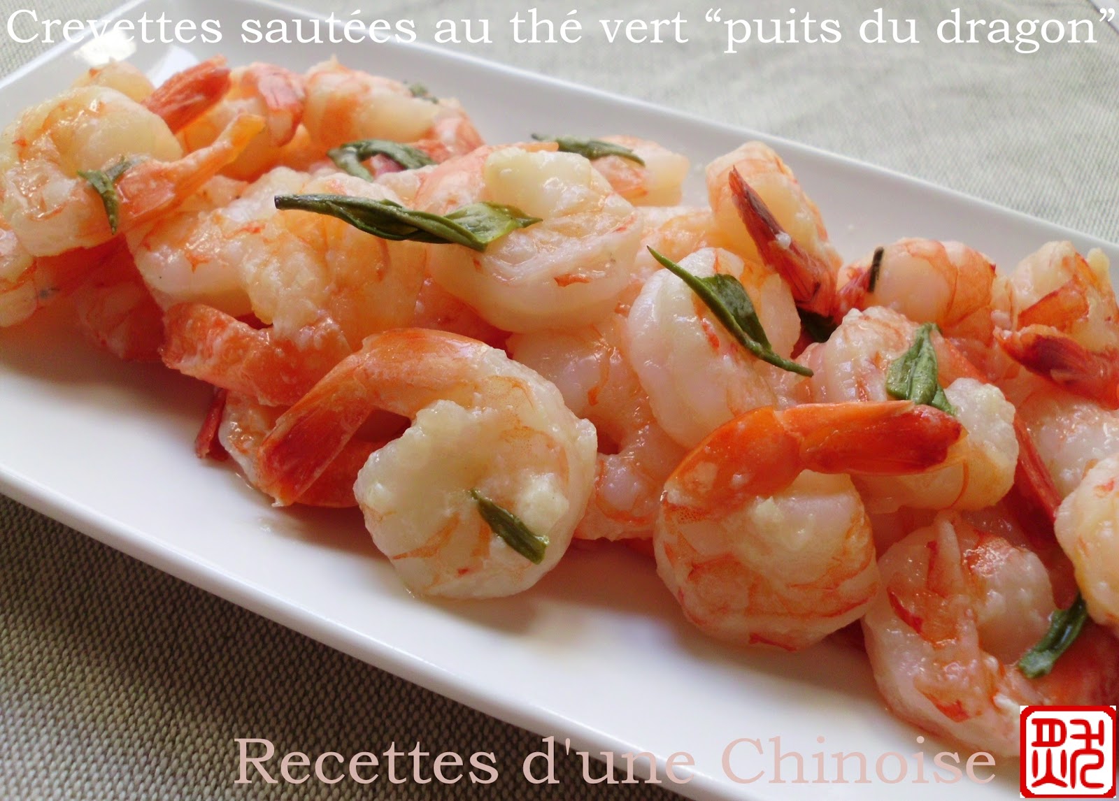 Crevettes sautées au thé vert "puits du dragon" 龙井虾仁 lóngjǐng xiārén