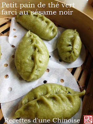 Petit pain de thé vert farci au sésame noir 柳叶黑芝麻包 liǔyè hēi zhīma bāo
