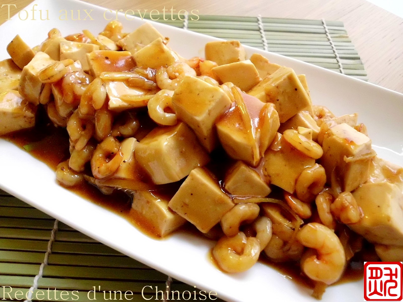 Tofu braisé aux crevettes 虾仁豆腐 xiārén dòufu
